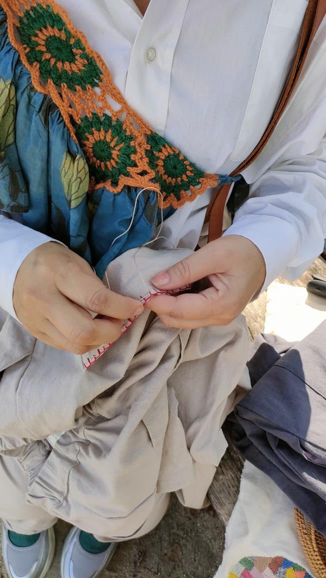 ■ ときめいて6色よりみちしよっか♡ 6色・6着だけの限定パンツ。 同じ生地が揃うか分からない今だけの特別なシリーズ。 1枚1枚に名前と小さな物語が宿る、cunm(カンム)だけの “よりみちパンツ” です。 軽やかで動きやすく、シンプルなのにどこか個性的。 ゆみゆみ先生(@chicu2.yumiko)のかわいいダーニングも施し、 世界にひとつだけの「特別な1本」に。 履いた瞬間、ふわっと心が軽くなるような—— そんなパンツができました。 ⸻ ■ 6つのよりみちカラー 01|赤 ― あかつき 「夜明け前、空が白々と。大きなおひさまにおはよう。」 始まりのパワーをそっとくれる、元気と勇気の色。 02|茶 ― こかげ 「キラキラ輝くひなたから、ちょっと寄り添ってくれるこかげ。」 落ち着きと温もりを運んでくれる、優しいまなざしの色。 03|チャコールグレー ― よるいろ 「しっとりと落ち着いたよるいろ。大人の雰囲気を醸し出す。」 静かな夜に包まれるような、深呼吸したくなる色。 04|ベージュ ― ひなた 「やわらかい光が降りそそぐひなたで、ゆっくりのんびり。」 心までほぐしてくれる、ぽかぽかやさしい色。 05|きなり ― しらゆき 「さらさらの優しい雪のようなしらゆき。」 どんなコーデにも溶け込む、ふんわり素直な色。 06|オリーブ ― もりのいろ 「少し光がさした木々の葉っぱの色。」 自然のやさしさと生命力をそっと感じられる緑。 ⸻ ■ 素材 綿 55% 麻 25% ウール 20% 今回の生地は 綿55%・麻25%・ウール20% の天然素材ミックス。 肌あたりは軽くやわらかく、履くほどに馴染んでいく風合いが魅力です。 ただし、ウールが入っているため • 素足・ストッキングのような薄い素材の上では すこーしチクッと感じる場合があります。 • タイツ・レギンス着用時はほぼ気になりません。 履き込むほどに繊維が馴染んでいくので、 まさに “育てるパンツ” として変化も楽しんでいただけます。 ⸻ ■ 価格 16,500円(税込) ⸻ ■ 特典 ご購入くださった方へ、感謝の気持ちを込めて… ・次回使える500円OFFクーポン ・Instagram投稿可能な着画で1,000円OFFクーポン ・特別LINEへご招待(裏側のお話や先行案内も…) ・一番早くお迎えくださった方へ「ミニリース」プレゼント ■ サイズ(平置き) ※おおよそのサイズになります ・総丈: 約93cm ・ウエスト: 約52〜100cm(総ゴム) ・ヒップ: 約124cm ・裾幅: 約20cm ※ゆったりシルエットで幅広い体型の方にフィットします ⸻ ■ 仕様・特徴 ・ウエスト総ゴムでらくらく ・深めの股上でしゃがんでも安心 ・ぽってり丸みのあるラインで体型を選ばない ・左右ポケット付き ・ダーニング刺しゅうがワンポイントに ・同じものは二度と作れない“完全一点物” ⸻ ■ 注意事項 ・お洗濯はネットに入れての単独洗いをおすすめします。 ・乾燥機は縮みの原因になるためお控えください。 ・お使いの端末により色の見え方が異なる場合があります。 ・一点物のため、交換はできません。 ・気になる点がありましたらお気軽にお問い合わせください。 ⸻ ■ 最後に あなたの“よりみち”に、 そっと寄り添う1本が見つかりますように。 毎日の景色が少しだけ楽しくなるパンツです。 気になっている方は、この機会にぜひ